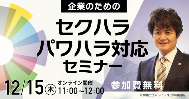 【12/15(木)無料セミナー】企業のためのセクハラ・パワハラ対応セミナー|デイライト法律事務所