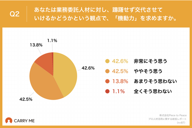 マーケティング領域を中心に活躍する業務委託の「プロ人材」と企業とのマッチングサービスを行うキャリーミー(https://carryme.jp/lp002/0826_serch_marketing/)を運営する株式会社Piece to Peace(本社:東京都千代田区)は、プロ人材活用に関する総括レポートを発表いたします。
