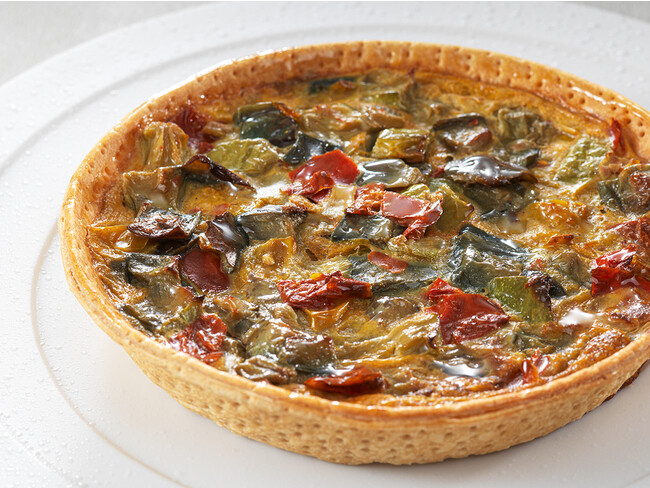 ズッキーニ、なす、パプリカなど南フランスを連想させる色鮮やかな野菜たちを、フランス郷土料理のキッシュに仕立てました。