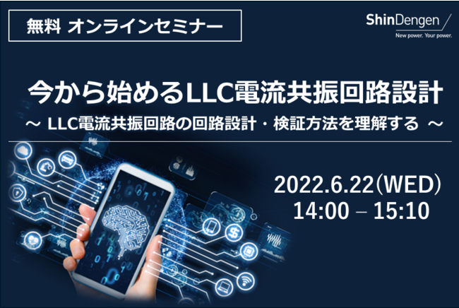 新電元工業株式会社は2022年6月22日(水)14:00から電源設計に関わる方に向けて、ご好評をいただいた無料オンラインセミナー「今から始めるLLC電流共振回路設計」の第二弾を開催いたします。