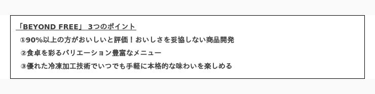 90%以上の方が「おいしい」と評価!おいしさで選ぶフリー食『BEYOND FREE』が本格始動