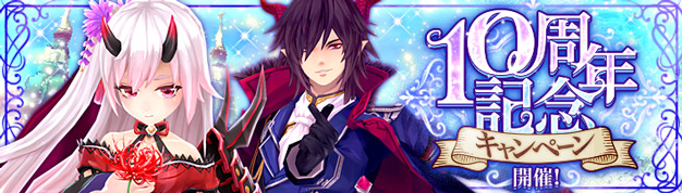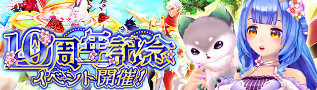 10周年を記念する多数の期間限定イベントを開催します。限定のアイテムと交換できるチケットがもらえるログインボーナスや、クエストで獲得できる経験値やアイテムドロップ率の増加など、豪華な内容となっていますのでぜひご参加ください。
