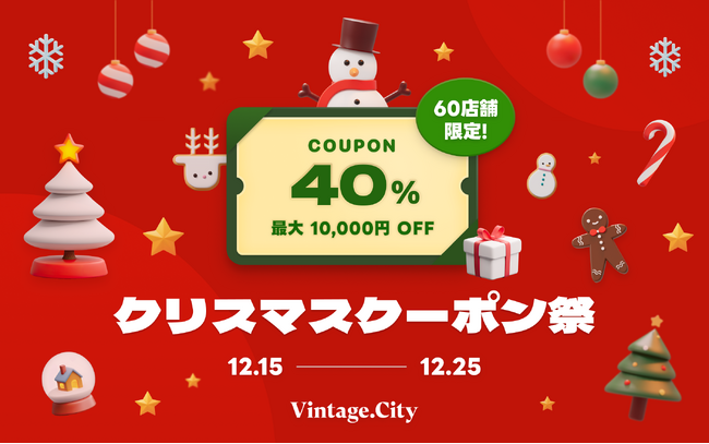 期間中は、Vintage.Cityに掲載されている即購入可能商品(※1)で使用可能な限定クーポンが発行されます。Vintage.Cityが年末年始に実施する初めての企画が盛り沢山なこの機会に、ぜひお買い物をお楽しみください。