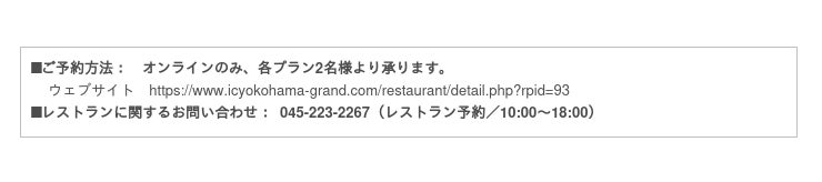 ■ご予約・お問い合わせ: 045-223-2366(アイ マリーナ直通/11:00〜18:00)
