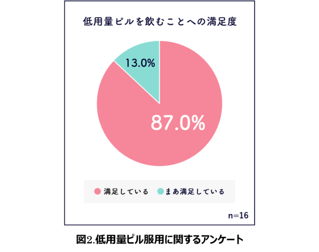 また、低用量ピルを服用することに対しても、「満足している」87.0%、「まあ満足している」13.0%と、服用者の全員が満足している結果 となり、その理由(複数回答)を聞いてみると、「月経痛が軽減した」93.8%、「経血量が少なくなった」87.5%、「生理前・生理中の不快な症状が減った」75.0%が上位に挙がりました。プログラム自体の満足度も100%となり、より多くの女性従業員の月経随伴症状の改善を目指すとともに、それにより生産性や従業員の働きやすさが向上することから、ポーラ・オルビス健保の保健事業において、『ルナルナ オフィス』を導入することが決定しました。