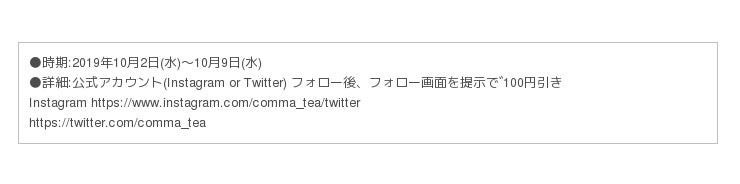 ●販売店舗:comma tea , comma TOGO 国内全店舗