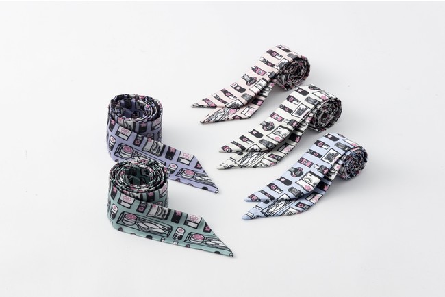 コスメ柄デザインのスカーフもセットに。可愛らしいアレンジが可能に