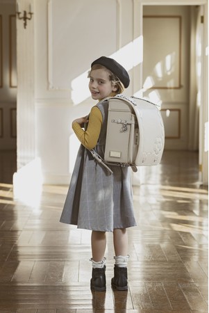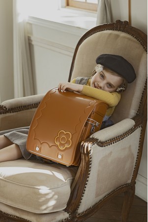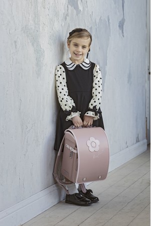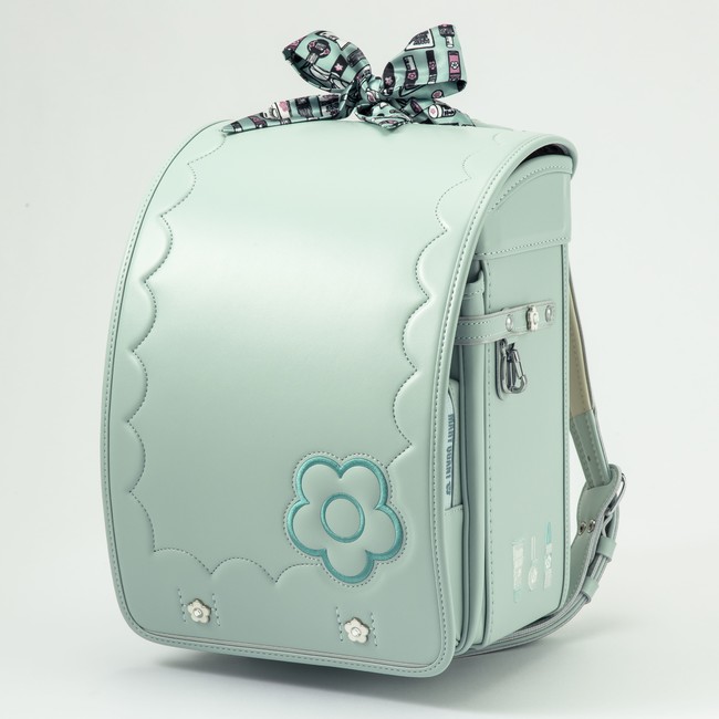 かぶせ部分に、ブランドのアイコンであるデイジーモチーフのアップリケを施し、シンプルながらエレガント感を漂わせるデザインが魅力。ベースカラーは人気色のミントグリーンとラベンダーを含む4色で展開。かぶせ、裏や側面、内ポケットには可愛らしいコスメデザインが施されており、女の子が憧れる“おとなカワイイ”ランドセルです。さらに本ランドセルには、付属品のスカーフがセットになっており、気分にあわせて楽しめるオリジナルカスタマイズが可能です。