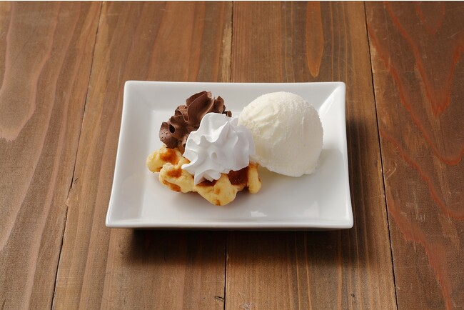 熊本県産和栗あんをワッフルの上に乗せ、ヒラヤミルク使用のアイスと2種のホイップで隠しました。