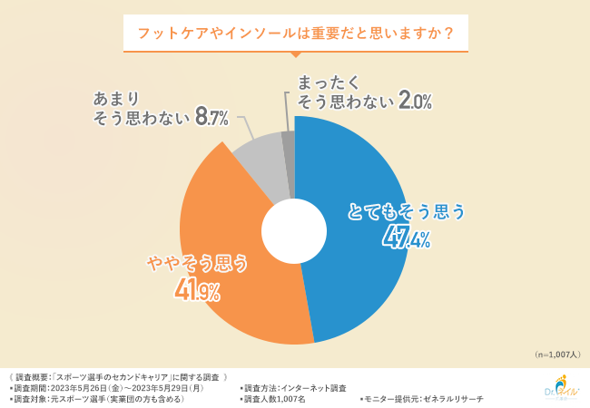そのような経験から、9割近くの方がフットケアやインソールが重要だと思っており、重要性がうかがえる結果となりました。