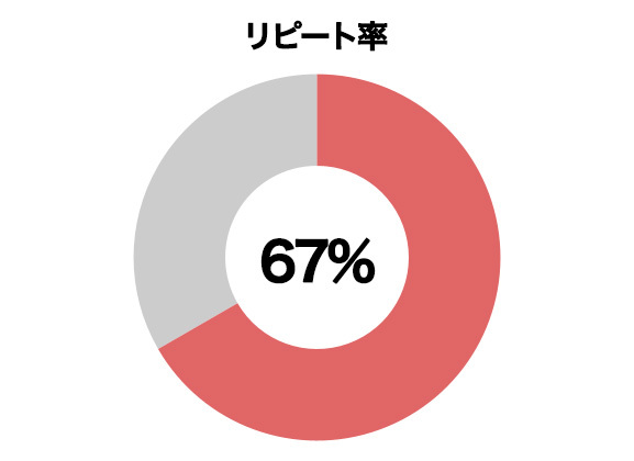 リピート率67%、平均利用回数7.7回、最高は脅威の43日利用!
