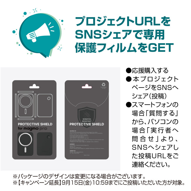 2.本プロジェクトをSNSシェアで、マグモプロの専用保護フィルム(定価1,980円)をプレゼント!
