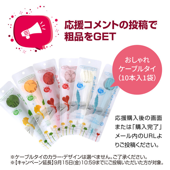 1.応援コメント投稿で「手で切れる!おしゃれケーブルタイ(結束バンド) 」をもれなくプレゼント!