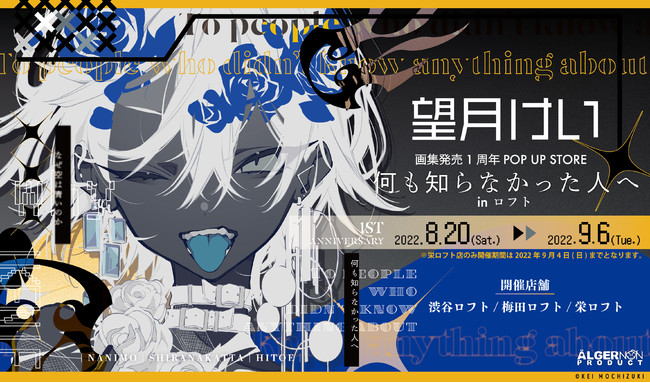 株式会社アルジャーノンプロダクト(本社:東京都台東区、代表:高山 聡士)は「望月けい画集 人間よ強欲であれ」発売1周年を記念したイベント「望月けい 画集発売1周年POP UP STORE〜何も知らなかった人へ〜 in ロフト」を8/20(土)より開催しております。