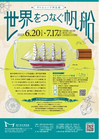 神戸海洋博物館では、企画展「ボトルシップ作品展 世界をつなぐ帆船」を2023年6月20日(火)から7月17日(月・祝)まで開催いたしますので、お知らせいたします。