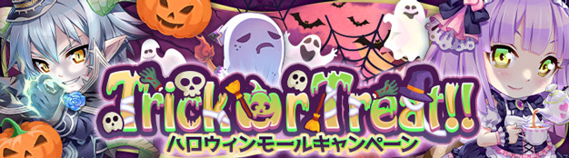 チャレンジのラインナップに、ハロウィンの仮装にぴったりなドクロがクールなドレスやスーツ衣装アバターが新たに登場しました。モールでは、お得なエンジェルコインの販売やハロウィンモチーフのアイテムが獲得できるBOXが登場しています。