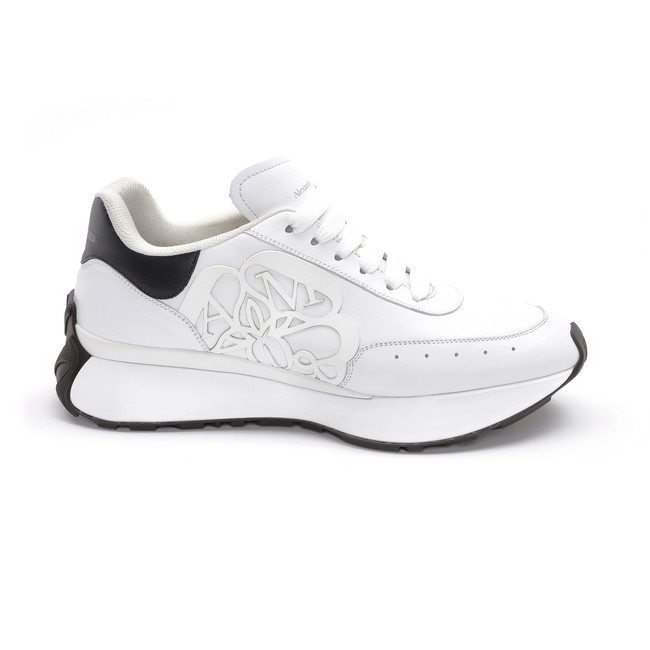 サイドにエンボス加工のシールロゴがあしらわれ、ヒールカウンター、タン部分にはAlexander McQueenのロゴが施され軽やかに仕上げられています。