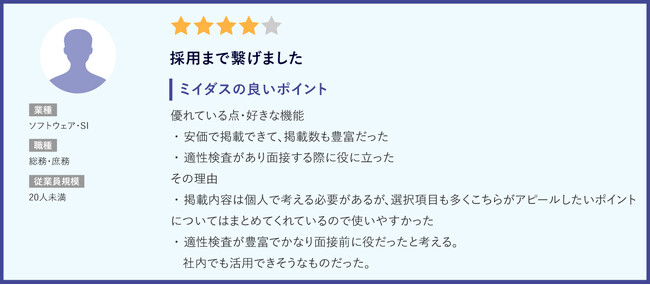 『ミイダス』をご利用いただいている皆様からは以下のようなコメントを頂戴しております。