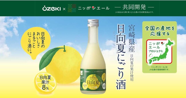 大関株式会社(社長:長部訓子/兵庫県西宮市)は、全国農業協同組合連合会(代表理事理事長:野口栄 本所:東京都千代田区、以下 JA全農)が推進する国内農業支援の取組み「ニッポンエールプロジェクト」に参画し、共同開発商品第一弾として「日向夏にごり酒300ml瓶詰」を2023年5月15日(月)から数量限定で新発売します。