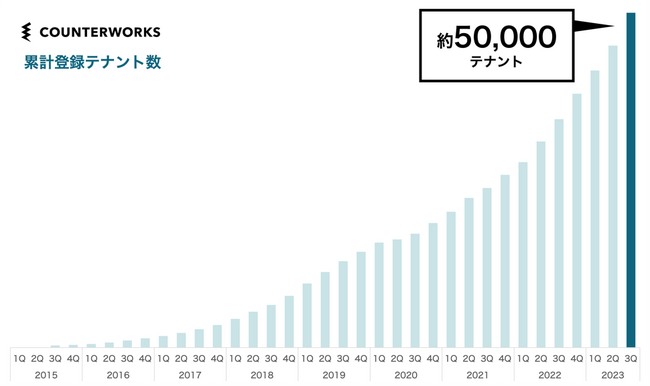カウンターワークスは、「すべての商業不動産をデジタル化し、商いの新たなインフラを作る。」をミッションにし、商業施設のオンラインリーシング支援SaaS「SHOPCOUNTER Enterprise」や、ポップアップストアの出店支援プラットフォーム「SHOPCOUNTER」を提供しています。