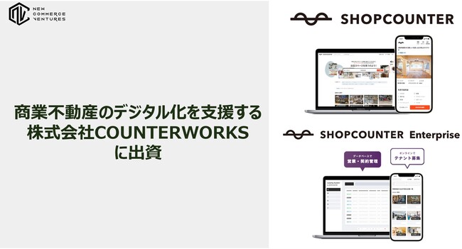 New Commerce Ventures株式会社(本社:東京都品川区、代表取締役:松山馨太・大久保洸平)は、このたび商業施設のオンラインリーシング支援SaaSや、ポップアップストアの出店支援プラットフォームを提供する株式会社COUNTERWORKS(以下、カウンターワークス)に出資しましたので、お知らせいたします。