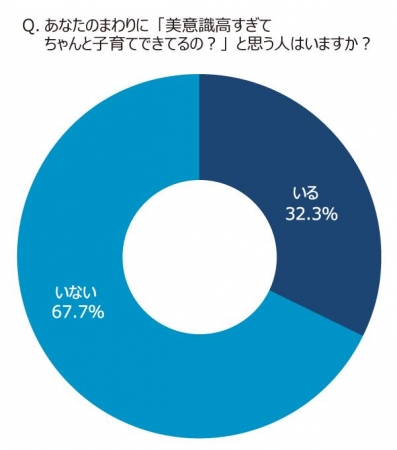 また、「女を捨てている」と思う人がまわりにいると回答した人は、56.7%。逆にまわりに「美意識高すぎてちゃんと子育てできているの?」と思う人がいると回答した人は、32.3%。