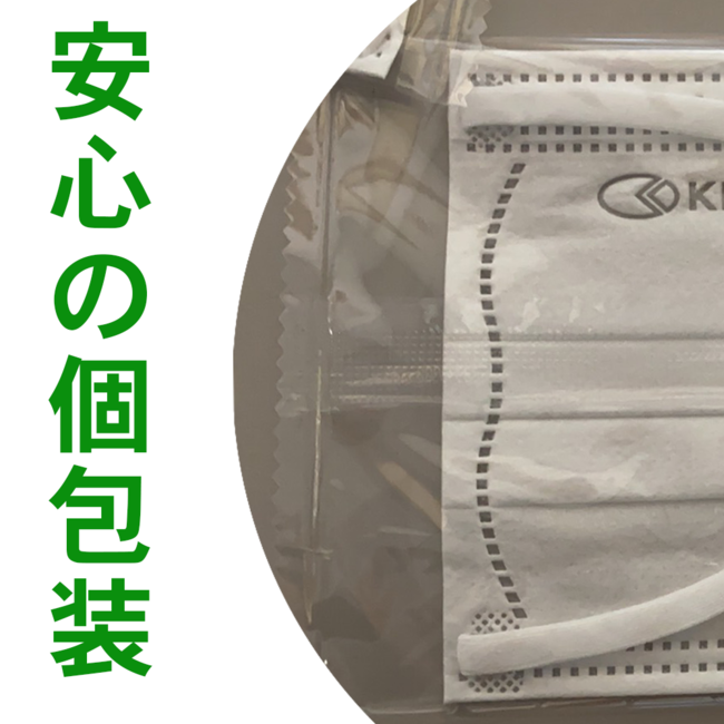 マスクは一枚づつ丁寧に個包装されておりカバンやバックに入れて持ち運ぶ際も衛生的な管理が可能となっております。