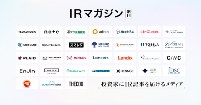 今回、投資家のみなさまとのIRコミュニケーションの向上を図る 上場企業31社が、共同でメディアプラットフォームnote上にIRマガジンを創刊しました。投資家の皆さまに、参加企業のIR情報をよりスピーディーにお届けし、投資判断に役立てていただくことを目的としています。