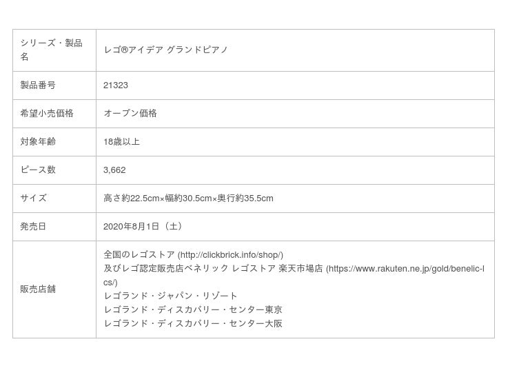 レゴジャパン株式会社(代表取締役:長谷川敦/所在地:東京都港区、以下レゴジャパン)は、ファンのアイデアによって、デザインされた「レゴ(R)アイデア グランドピアノ」を2020年8月1日(土)より発売いたします。