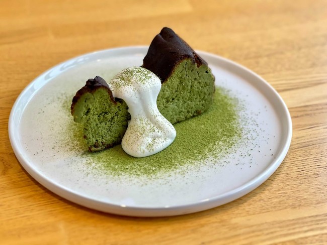 濃い抹茶とチーズが合わさった濃厚なバスクチーズケーキ。クリームと召し上がってもより抹茶の渋さが際立ち最後までお楽しみ頂けます。