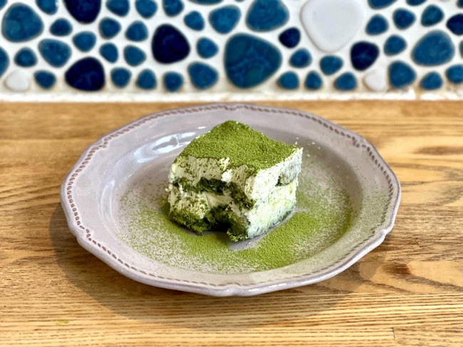 静岡県産高級抹茶を当店自慢の『ムー』にたっぷり染み込ませました。爽やかな抹茶と自家製マスカルポーネクリームの濃厚ティラミスです。