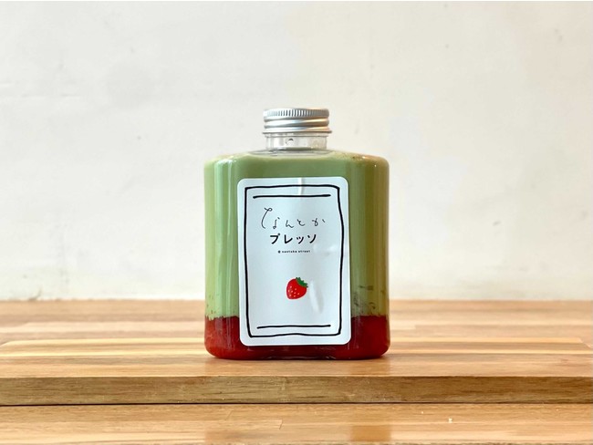 高級抹茶を使用した抹茶ミルクと自家製の果肉入りいちごソースがたっぷり入った期間限定ボトルです。