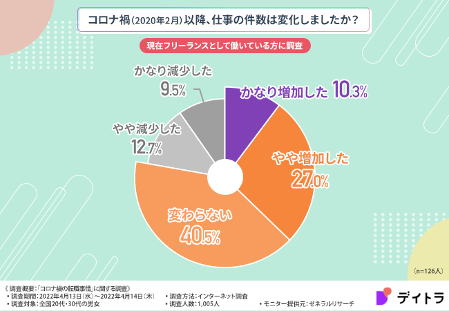 しかし、フリーランスの約4割はコロナ禍でも仕事が増えたという方が多いことも分かりました。