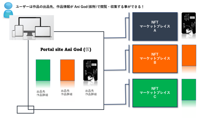 作品の出品先、希少価値情報、在庫などユーザーがNFTマーケットプレイスを閲覧する前に作品情報を収集(チェック) する情報収集サイト ( 仮称:Ani God Portal ) の展開を行います。