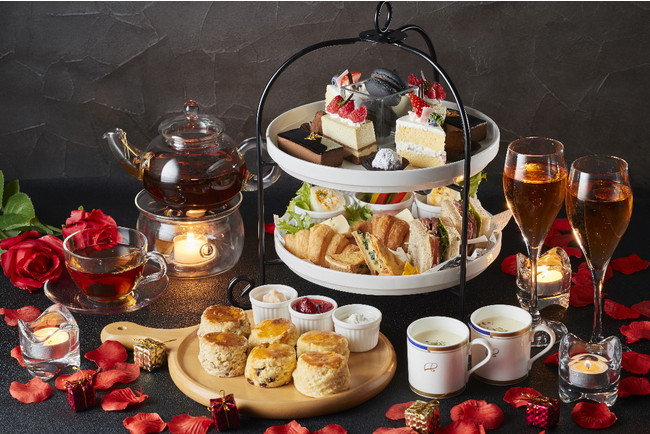 スタンダードセットさながらに華やかさと彩りを重視しながら、チョコレートスイーツを中心とした「Sweets Plate」、程よい塩味が絶妙なコントラストを生む「Light Meal Plate」の2段プレートに加え、ホテルパティシエが焼き上げる自家製スコーン3種の食べ放題とドリンクがセットになった、人気のアフタヌーンティーセットのバレンタインバージョンをぜひお召し上がりください。