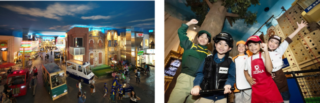 KCJ GROUPは、3歳から15歳までのこども達の職業・社会体験施設「キッザニア東京(2006年10月開業)」「キッザニア甲子園(2009年3月開業)」の企画・運営をしています。「キッザニア」は、現実社会の約 2/3サイズの街並みに、実在する企業が出展する約60のパビリオンが建ち並び、約100種類の仕事やサービスを体験できます。キッザニアのコンセプトは、「エデュケーション(学び)」と「エンターテインメント(楽しさ)」を合わせた『エデュテインメント』。こども達が好きな仕事にチャレンジし、楽しみながら社会のしくみを学ぶことができる「こどもが主役の街」です。
