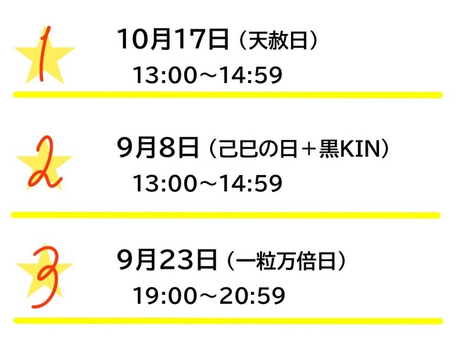 9月23日(秋分の日・土)は、スタートしたことが万倍に膨らみ実ると言われる「一粒万倍日」と、マヤ暦で社会貢献や人助けをするとお金に恵まれると言われる日が重なります。そのため、収益金が社会貢献に使われている宝くじを購入することも良い日です。吉となる時間帯は19時から20時59分までなので、宝くじ売り場が閉まっている場合はネット絵購入すると良いでしょう。