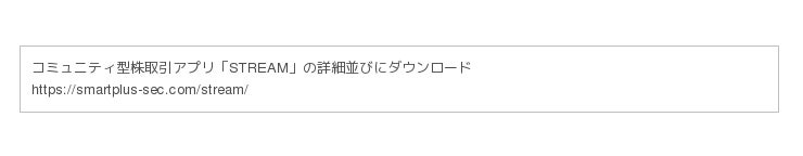 STREAMは、株取引機能(現物取引並びに信用取引)にSNS機能を統合したコミュニティ型株取引アプリです。ユーザー同士が株取引に関する情報を交換しながら楽しく株取引が行える他、日本で初めて従来型売買委託手数料を完全に無料とし、より有利な価格での約定を期待できる「SMART取引」を採用するなど、ユーザーの株取引に関する煩わしさを排除した全く新しい株取引サービスです。