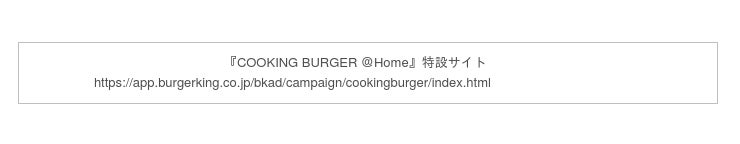 あなたのおうち時間を楽しくする『COOKING BURGER @Home』を、ぜひこの機会にお楽しみください。