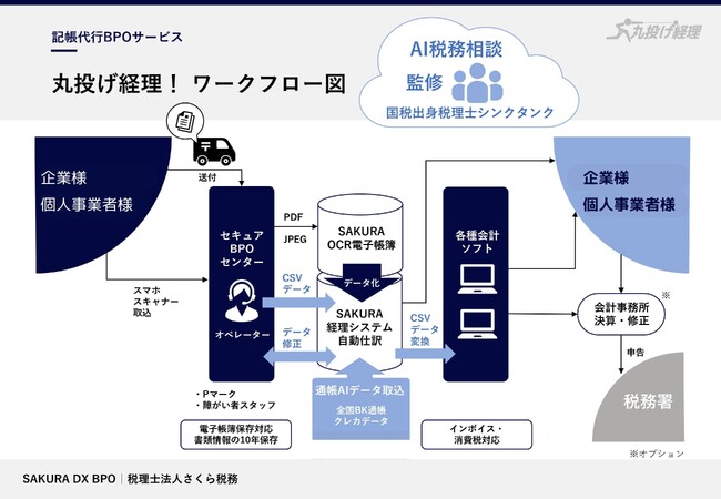 SAKURA United Solution株式会社・税理士法人さくら税務(東京丸の内オフィス:東京都千代田区、本社:埼玉県さいたま市南区、代表取締役:井上 一生)のSAKURA DX BPO株式会社(本社:東京都千代田区丸の内)は、日本企業の経理部門における課題を解決すべく、記帳代行BPOサービス「丸投げ経理」をリリースしました。「丸投げ経理」は、経理書類を送るだけで、インボイス、電子帳簿保存法に適合した記帳代行から税務申告までを一気通貫で完了できるサービスです。