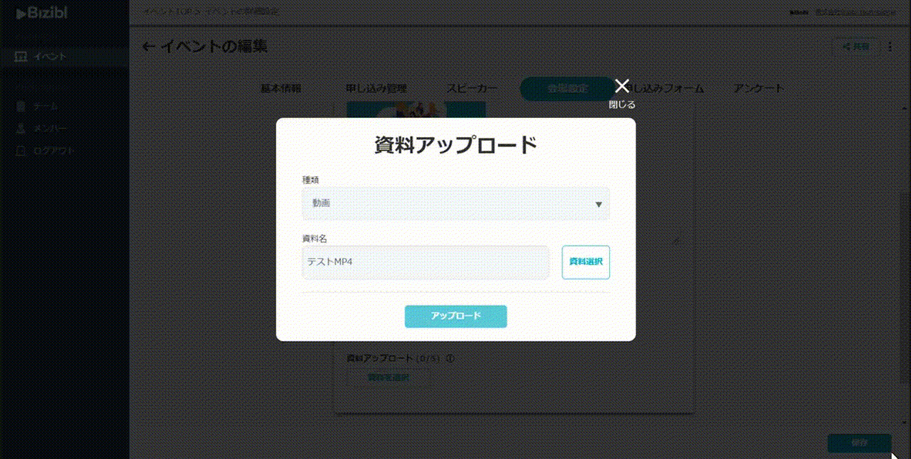 1.登壇者は事前にウェビナーで利用する動画データ(MP4)をアップロードします。