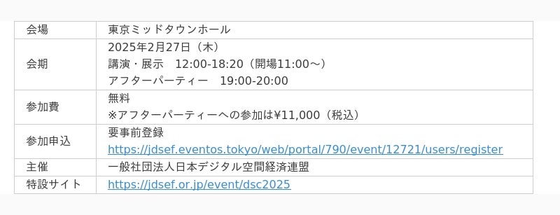 DSC 2025は、デジタル空間経済連盟が掲げる「デジタル空間における経済活動を活性化し、日本経済の健全な発展と豊かな国民生活の実現への寄与」を目指した取り組みの一環です。当社は今後もデジタル空間経済連盟のパートナー企業として、新しい価値の創出と社会の課題解決に貢献してまいります。