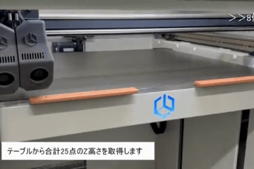 オートレベリング機能を搭載しています。テーブルから25点のZ高さを取得し、その点から平均を算出し、基準値として設定します。造形中は、測定した各点と基準値との差からテーブルとノズルの距離が常に一定となるようZ軸を自動で調整します。