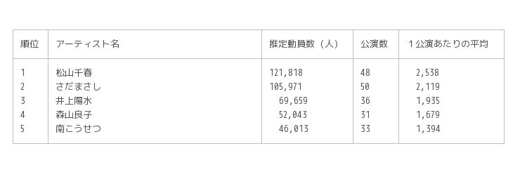 ※1 ライブ動員ランキングについて