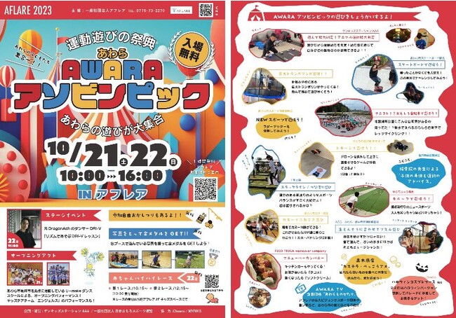 令和5年10月21日(土)、22日(日)の2日間、福井県あわら市のアフレアで、市内の「遊びコンテンツ」が集結した運動遊びの祭典「AWARA アソビンピック」を開催します。