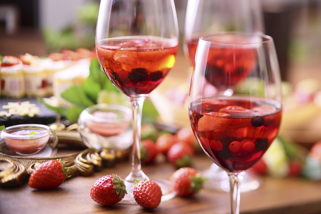 鮮やかな赤色に、いちごやラズベリー、ブルーベリーがごろごろと入ったサングリア風の「ストロベリーカクテル」はノンアルコールでご提供。