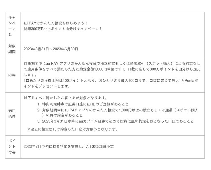 〜「au PAYでかんたん投資をはじめよう!総額300万Pontaポイント山分けキャンペーン」も実施〜