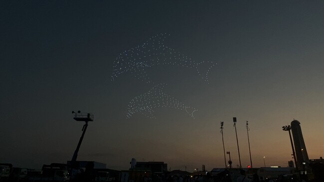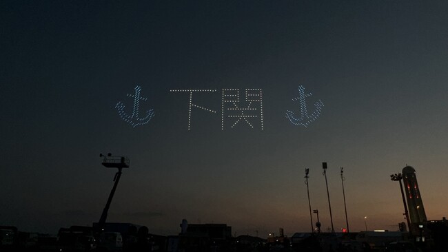 下関にちなんだクジラやイルカを500機のドローンアートで表現