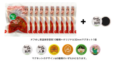 抽選で100社に「オフめしイート&ストック」常温保存そうざい10種類とノベルティグッズ(マグネット)をプレゼントいたします。