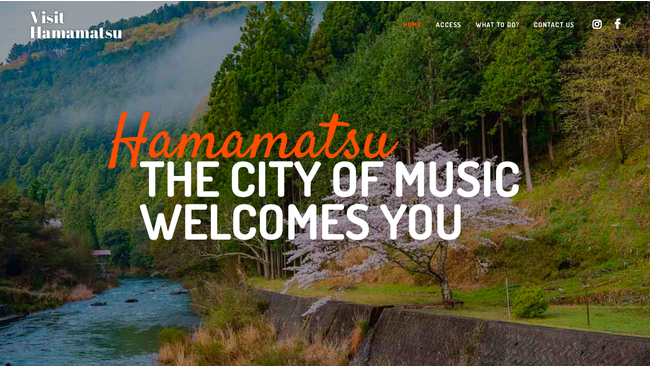 動画制作と同様「音楽の街 浜松」をテーマに英語の特設PRページを制作、公開しました。当ページ内は動画の内容と統一感を持たせ、各動画とともに動画に登場した観光資源を紹介しています。各観光資源の簡単な説明と、浜松市多言語観光ウェブサイト(https://www.hamamatsu-japan.com/en/)のリンクも掲載し、施設の詳細を確認できる仕様となっています。